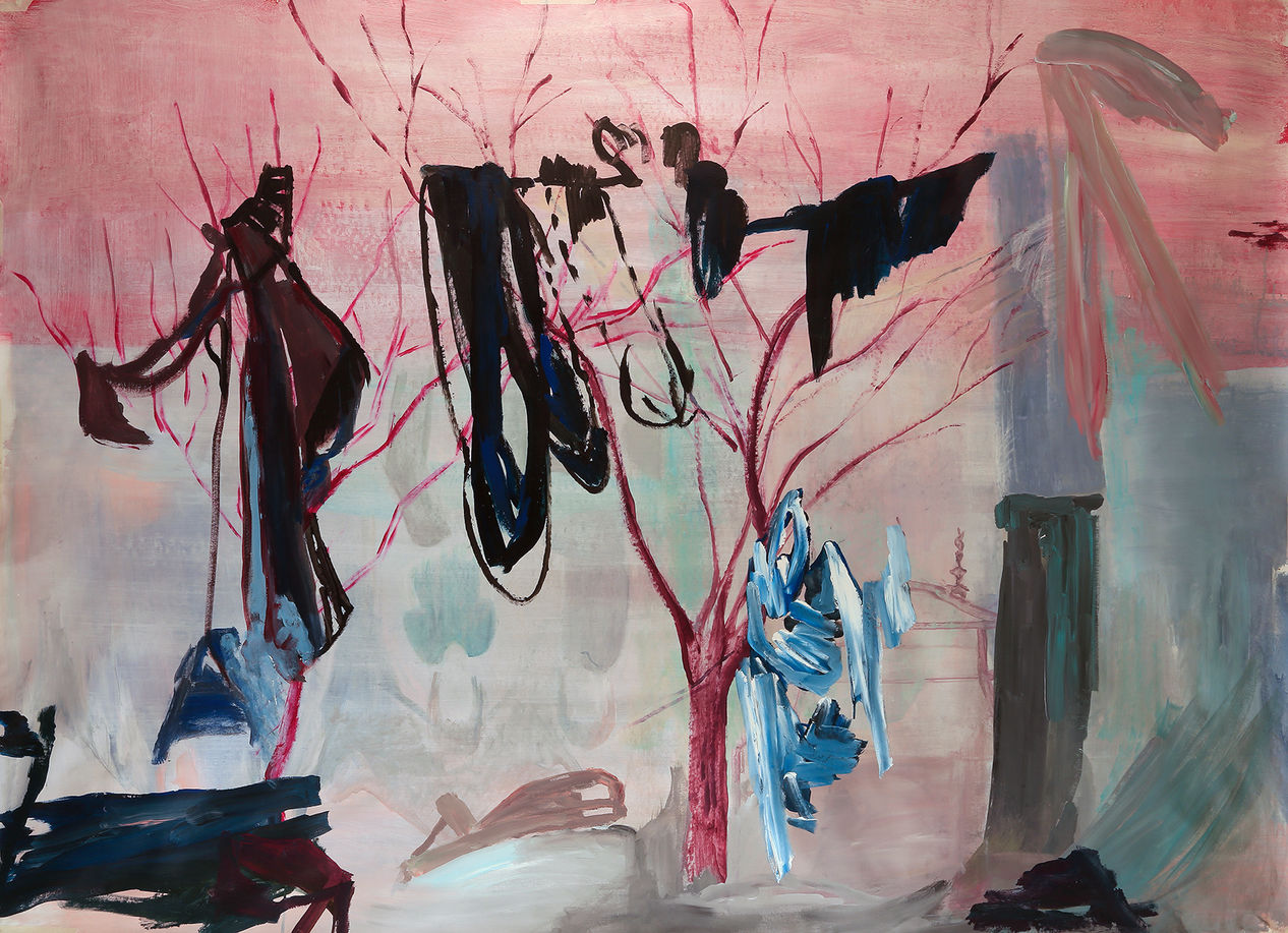 Cartón, terciopelo, tela, papel. Todo soporte es compañero leal para erigir banderas eróticas repletas de pinceladas en danza cósmica. Pliegues contenedores de naturalezas impactantes e impactadas, centelleantes y cazadas, por una humanidad sedienta de noches y mares, pero también fragmentada por caprichos. Allí, la artista pinta como quien abre preguntas: